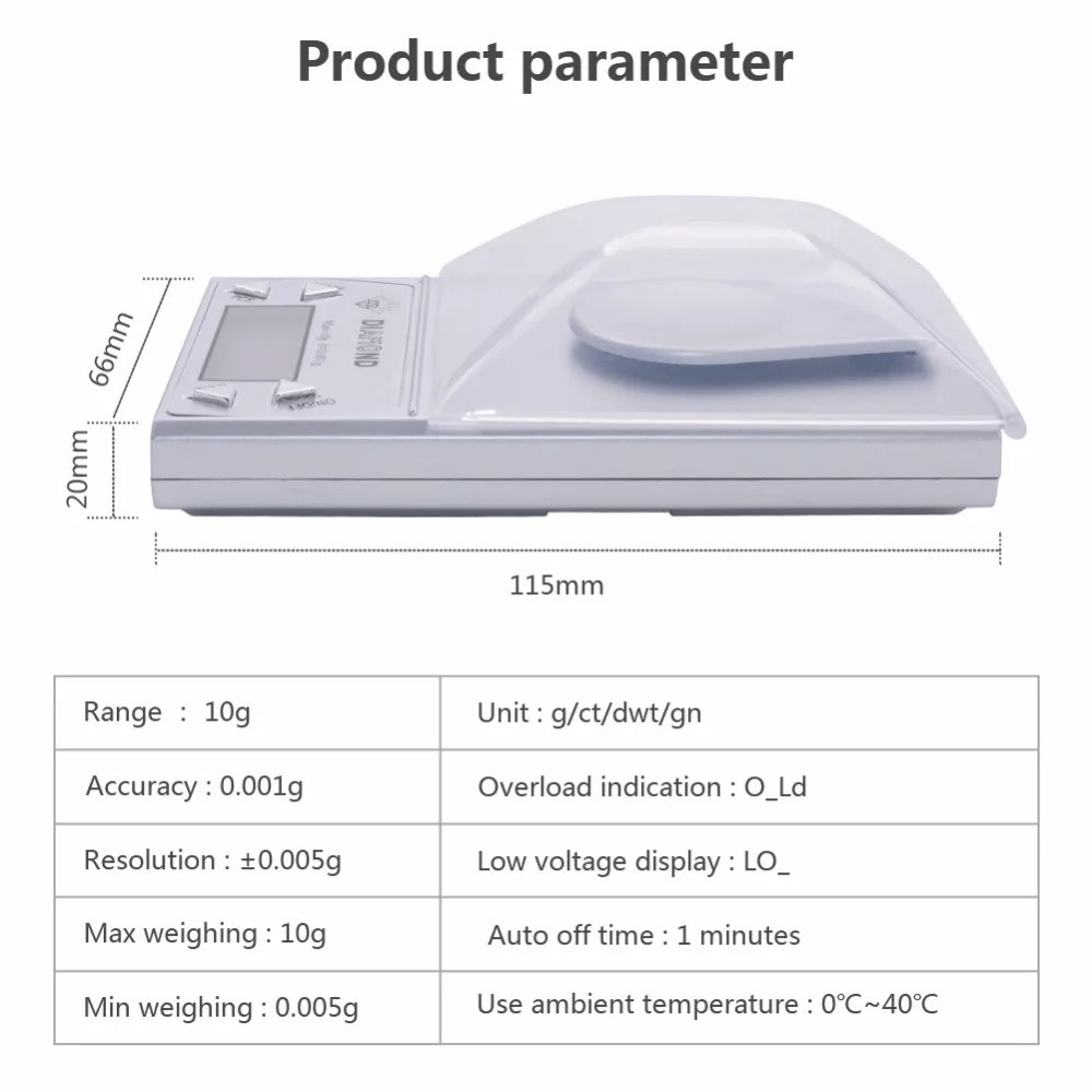 - Capacity of the scale: 0.001g to 10g
