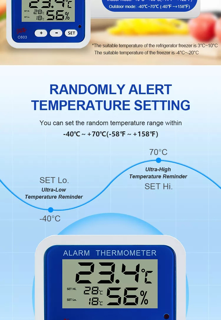 2.Highest/lowest temperature alarm function (default setting: highest 28℃ ; lowest:18℃ ) | |